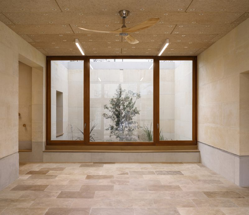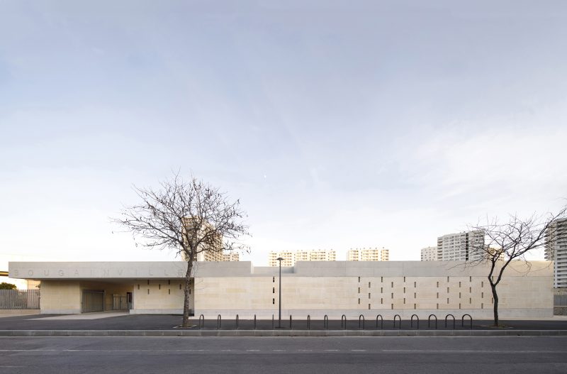 Le relais nature marque l’entrée principale du parc et intègre la nature comme une fonction éducative à l’usage des enfants. L’écriture architecturale est simple et massive. Elle convoque un corps en pierres massives et structure béton sur laquelle se pose une épaisse toiture-terrasse végétalisée. Des larges ouvertures vers la ville et le parc transforme le visiteur en témoin. Témoin privilégié du rôle fondamental de la nature dans la ville de demain, et témoin de la mutation de ce morceau de ville. Il ne faut pas rajouter. Il faut au contraire soustraire. Soustraire de la pierre pour laisser place aux usages et aux habitants. Soustraire du plein pour laisser place à une ventilation 100% naturelle. Soustraire pour créer des espaces ombragés, où il fait bon vivre.
