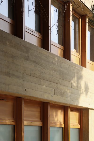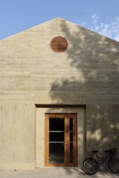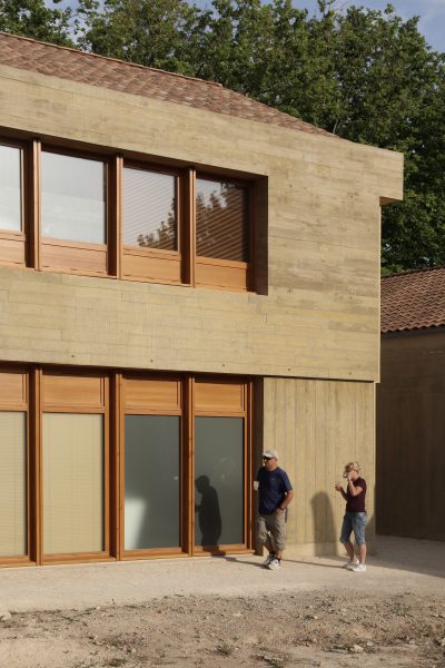 matériaux: béton teinté, pierres de récupération, menuiseries bois